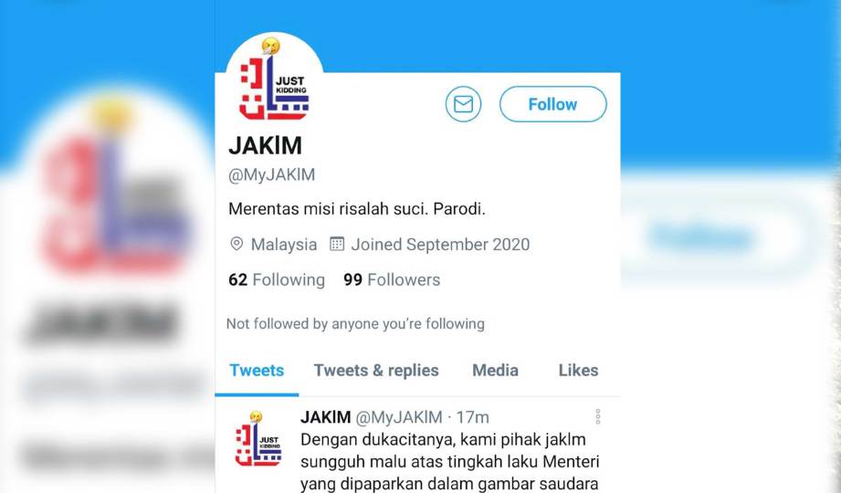 Bernama melaporkan Jakim dimaklumkan tentang kewujudkan akaun “parodi” itu oleh pengguna Twitter. -FMT