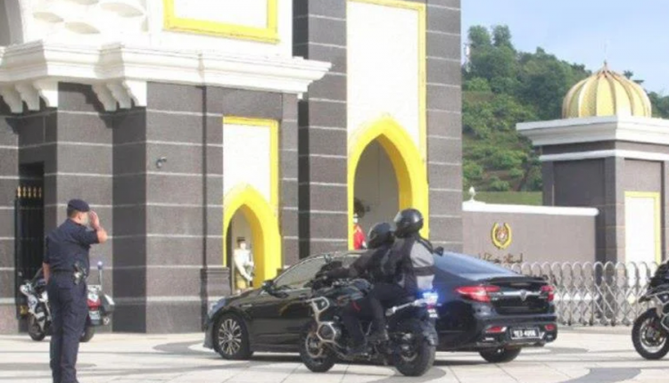 Kenderaan membawa Anwar bersama beberapa kenderaan polis pengiring dilihat tiba di perkarangan Istana Negara pada jam 8.22 pagi sebelum masuk melalui Pintu Utama.
