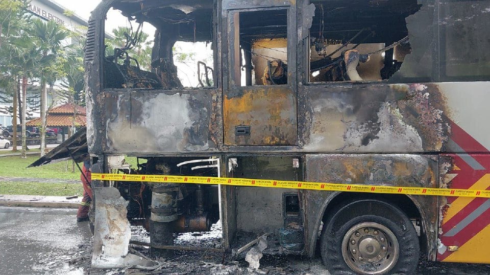 Bas UTM terbakar, enam penuntut, pemandu bas selamat