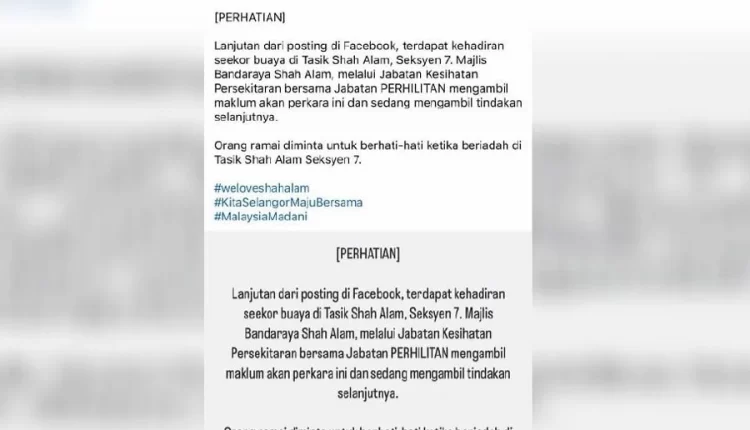 In 2019, Tasik Shah Alam, Seksyen 14, was also in the news when a juvenile saltwater crocodile was spotted at the lake’s water pump.