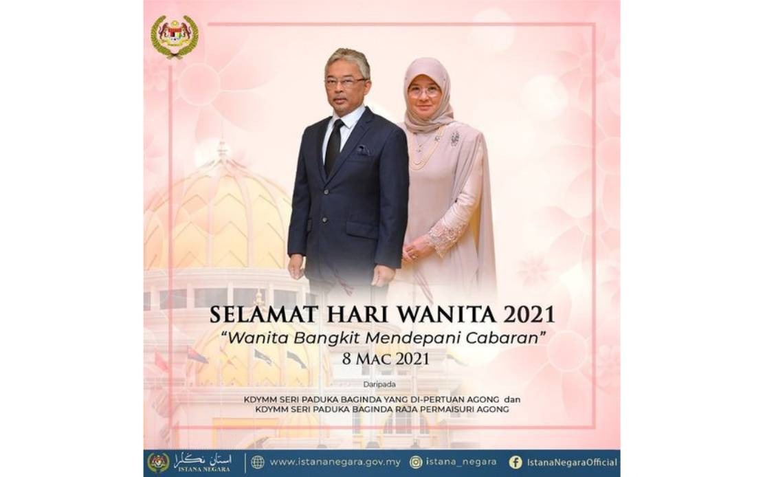 Jelas Baginda, kekuatan wanita terserlah ketika pandemik COVID-19 yang melanda negara kini apabila mereka mampu bangkit serta cekal mengatasi sebarang cabaran, sesuai dengan tema sambutan Hari Wanita tahun ini – Wanita Bangkit Mendepani Cabaran.