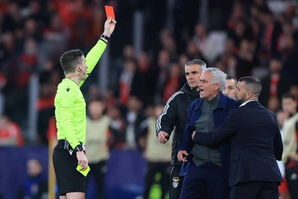 Mourinho dilayangkan kad merah pada perlawanan pertama selepas membuat bantahan keras dari tepi padang.