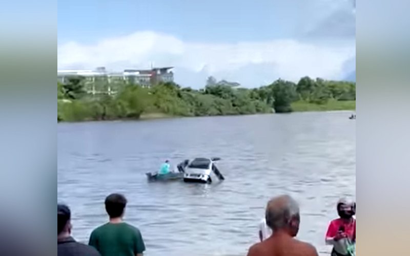Seorang daripada individu dalam perahu dikenali sebagai Bonnie berkata dia melihat kenderaan berkenaan di dalam sungai ketika sedang bertugas membersihkan sampah sarap di sungai itu.