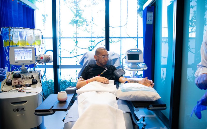She has become close to him during nearly 40 plasma exchanges, during which his blood is washed and which take several hours.