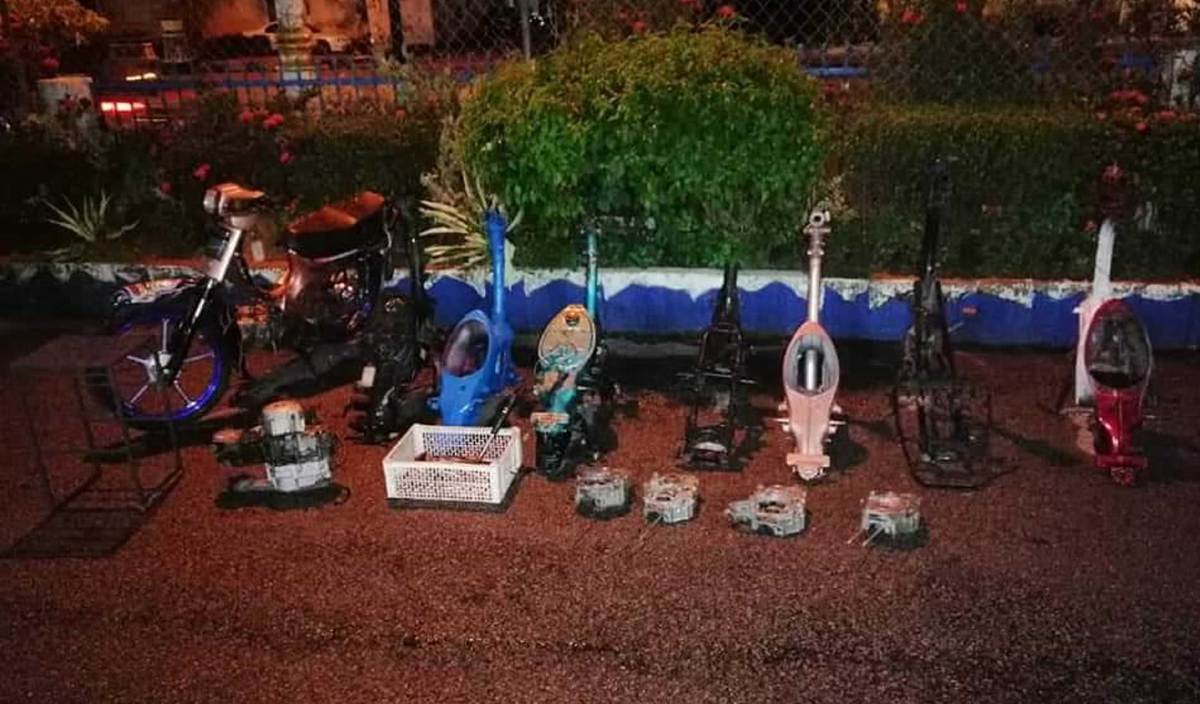 “Pemeriksaan kemudian dijalankan di dalam rumah berkenaan dan menemui beberapa enjin dan rangka motosikal yang dileraikan suspek.