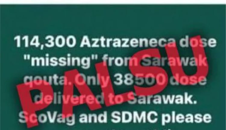 Beliau berkata, berita palsu itu mendakwa jumlah dos vaksin AstraZeneca yang sepatutnya diterima Sarawak, telah berkurangan serta menggesa penjelasan diberikan kepada orang awam.
