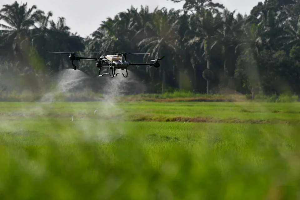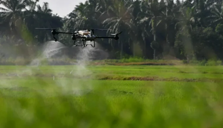Teknologi dron bagi sektor pertanian digunakan dalam proses penyemburan baja serta racun pada tanaman termasuk padi mampu mempercepat proses dan mengurangkan kebergantungan pada tenaga kerja manusia.