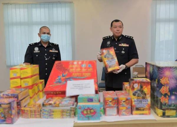 Ketua Polis Daerah Batu Pahat, Asisten Komisioner Azhan Abdul Halim berkata, dalam serbuan pada jam 2.30 petang itu pihaknya turut merampas mercun dan bunga api bernilai RM120,000 daripada kedua-dua suspek berusia 49 dan 57 tahun terbabit.
