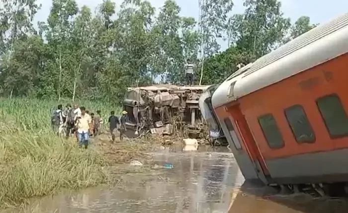 TV visuals showed coaches of the Chandigarh-Dibrugarh Express, which connects India’s northern states to the eastern state of Assam, on their sides along the tracks, with passengers sitting outside with their luggage.