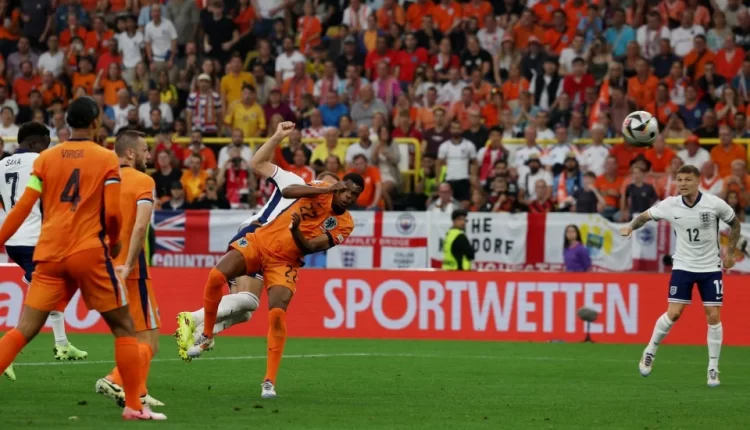 Pemain England itu dihadang oleh pemain pertahanan Belanda, Denzel Dumfries ketika dia melakukan rembatan kencang yang melambung tinggi dan pada mulanya, pengadil Felix Zwayer dari Jerman memberikan sepakan gol.