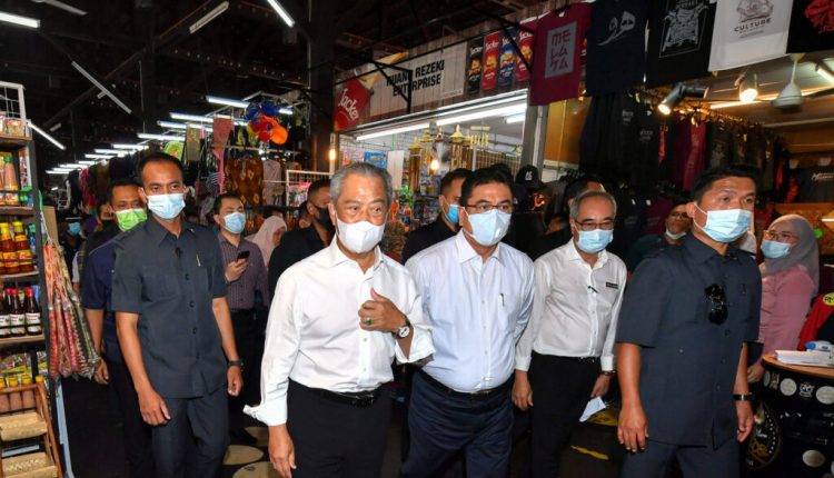 MELAKA: Prime Minister Tan Sri Muhyiddin Yassin took time off to mingle with visitors and traders of Pahlawan Walk in Bandar Hilir here.