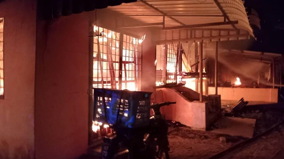 Dalam kejadian kira-kira jam 1 pagi tadi, lima beranak termasuk empat kanak-kanak rentung selepas kediaman mereka di Jalan Bakti, Kampung Berangan Enam, Umbai di sini, musnah dalam kebakaran.